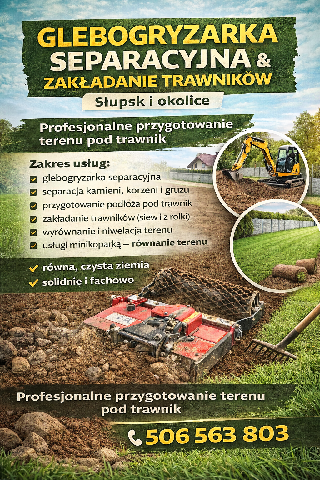 Dzięki własnemu sprzętowi i doświadczeniu wykonujemy prace kompleksowo – od przygotowania terenu po gotowy, zielony trawnik. Usługa skierowana jest zarówno do nowych działek, jak i ogrodów wymagających renowacji.